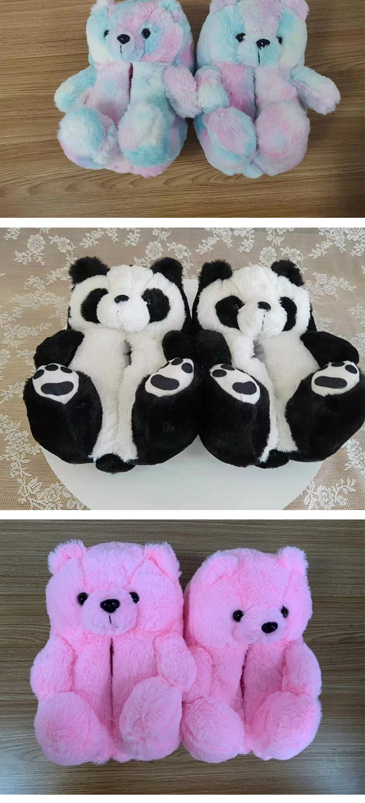 Custom wholesale new teddy bear slippers plush home female slippers